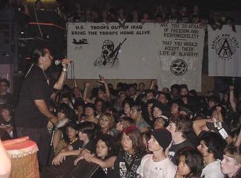 | As of late, a lot of punk rock shows have been going on in places such as Long Beach, South Central, East Los Angeles and Corona. This report is not going to be as comprehensive as it could be, so I apologise beforehand if your scene isn't represented. It's not so easy for me to attend all the shows and know all the bands. The most popular vegetarian grindcore band is Phobia, who will be releasing another new CD in the future. Watching this band live is an intense experience. Their drummer alone, sounds like a machine. Another similar sounding band, SABU, has been playing for some time now. If you fancy Phobia, I'm sure you would appreciate SABU as well. Jimmy, formerly of Resist And Exist (RIP), has joined the Riverside band, Holokaust, as a second guitarist. Their music combines Discharge with early 80's peace punk bands like Antisect. Anarcho-punk band, Against Empire, have released their own LP/CD on Threat To Existence Records and they will be going on tour this summer with Mala Sangre. Resistant Culture has video out that you can download at www.myspace.com/ resistantculture Resistant Culture describes their music as "Tribal Grind." The drummer of the band, Ben Axiom and his friend Emily run a space in Long Beach called the Gaian Mind. From what I've been told, a lot of youth hang out at this place. They hold weekly vegetarian potlucks, workshops teaching youth how to garden, and more. A band that I highly respect is Seven Generations. They are a anarcho-, vegan, straight-edge band from Orange County. I've booked them a show once, and they are really amazing on stage. The singer is very outspoken about the bands lyrics and politics. The band that I've been managing (I do not sing for them), is called Autonomy. They are an old Southern California Feminist, Peace-punk band that reformed. We recently did a benefit show for Anarchy Journal Magazine in the Bay Area. Autonomy also played a couple shows in Mexico with Fallas Del Sistema. A split with Battle of Disarm (Japan) is in theworks for the future. One of my favorite bands right now is Aztlan Underground, whose singer used to play bass in the early 80's peace-punk band The Iconoclast. I would describe their music as a mixture of different styles of alternative music with an emphasis on their indigenous roots and culture. Their most popular song includes the line "We didn't cross the border, the border crossed us!" Another Destructive System have been playing some shows around the Southern California area. They are planning to record an album with old and new songs. Anima Mundi plays in the peace-punk style. They got a lot of responses recently due to their uncompromising beliefs against macho slam dancing at shows. Until this day, kids still talk and debate about this issue. This band is heavily into animal rights. Anima Mundi is planning to self-release a CD this year. Recently, veteran punk band Armisitice and Scarred For Life played great shows at the Showcase Theater in Corona. Look out for upcoming releases and shows. Scarred For Life has a split EP with Disclose (Japan) coming out on the Long Beach label, Despotic Records. So.Cal. Latino Hardcore band, Mugre, made up of folks from bands like Harto, Knife Fight, Esperanza, etc. have been playing shows a lot lately. They sing and talk a lot about issues of violence in the punk scene, immigration, resisting white supremacy, etc. They have two EPs scheduled for release. One on Collapse Records and the other, a split with L.A. one person D-beat band, JUTRO. Shows: It seems like there has been a drought in show spaces. But from what I've been told there are a lot of shows happening in backyards and warehouses from Long Beach to Compton to East Los Angeles. Punks and Activism: Lately, I've been seeing a lot of younger punks attending rallies and marches against the war, against the racist immigration bill in Los Angeles, and more. I'm glad to see young people getting more aware of social and political issues, especially when young people are shut down and disrespected daily. I have a lot of respect punks organizing punks like the example of the Gaian Mind space in Long Beach. A lot of the older punks rarely spend time with the younger crowd, but I hope this changes. This isn't a punk organization, although there are some younger punks involved: the Southern California Anarchist Federation. The Orange County chapter has been putting on Anarchist cafe/picnic events in Tustin. The Los Angeles chapter has a youth collective that is beggining to organize open mic events at the Youth Justice Coalition Center. This open mic is open to all youth, especiallys kids into Hip-hop and punk. The L.A. chapter do a lot of great community organizing. |