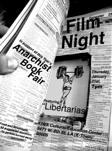 | The 2nd Los Angeles Anarchist Bookfair After months of doing research and maneuvering through intricate social mazes we have chosen a location for the 2nd L.A. Anarchist Bookfair. It will be taking place on the beautiful grounds of Barnsdall Art Park. To see the photos and videos from the 1st Los Angeles Anarchist Bookfair click on the link below: 1st Annual Los Angeles Anarchist Bookfair ( the web site above has audio files from different workshops) Please check out more updated web site for the L.A. Anarchist Bookfair: http://anarchistbookfair.com January 25th, 2010: Thank you for coming out to the Bookfair. Just added the Video page. It's on the upper left. Check back in 2 weeks for tons of photos. January 22nd,2010: Please come back to this page in mid February. We will have tons of photos and videos from the Bookfair. We now have the list of confirmed workshops. Click here January 19th, 2010: LOS ANGELES – A group of Southern California anarchists is holding a bookfair on Sunday, January 24th at Barnsdall Art Park in Hollywood from 11: 00 AM to 9:00 PM. The park is located at 4800 Hollywood Blvd, Los Angeles, CA 90027. The purpose of the bookfair is to provide the Los Angeles community with access to radical literature, engage in workshops, discuss current topics, and create communities of resistance. “Anarchism is a working-class response to capitalism,” said Diego Flores, one of the bookfair organizers. “Now that the system is failing so massively, with so many out of work and even reforms such as health care bill really being limited by big business, a lot of people are becoming interested in what anarchism has to offer.” For this reason, in addition to the author panels one might expect at a literary event, there will also be workshops regarding the student movement, anti-authoritarian parenting, indigenous resistance, health, political prisoners, and many more topics touching various aspects of life. “Workshops allow people to actually get involved with the material that is being presented,” explained Emma, a member of a writer's collective and another bookfair organizer, “and that really goes along with our vision of creating a non-oppressive society with everyone's participation.” “Everyone is welcome at the bookfair. We all have things to learn and to teach,” she continued. Children's activities will also be provided in order to facilitate the participation of families, and food, including vegetarian and vegan options, will be available. The park is also wheelchair-accessible. “Last year caught us off guard. We were expecting 150-200 people, and well over 500 showed up. This year is going to be even better because of the unique location. It's close to public transportation lines, it's got a gallery and a theater, and once the sun goes down, we get a beautiful view of L.A. I'm really excited about this year's bookfair!” said a bookfair organizer who preferred not to give her name. Workshops and panels will be held during the day, with musical performances scheduled for the evening. In order to create awareness about the bookfair, and about anarchism in general, the Los Angeles Anarchist Bookfair Collective is hosting a screening of the film Libertarias, a film about the struggles of Spanish women against both dictator Franco's fascism and the sexism of their own comrades in arms. The film will be screened Thursday, January 21 at the Koreatown Immigrant Worker's Alliance Culture and Education Center, 3465 W 8th Street in Los Angeles at 7:00 PM. The screening will be followed by a discussion about the film, and although a donation will be requested at the door, no one will be turned away for lack of funds. The following day, the collective will also host a benefit concert for the bookfair at the same location, which will feature Canadian hip-hop, folk, and punk. January 14th 2010: Check out the Flyer and Art Work Page. L.A. Anarchist Bookfair Collective will be on KPFK 90.7FM today from 7pm-8pm on the Lawyer's Guild Show. Or you can listen live online: http://www.kpfk.org/ January 09, 2010: More stuff got added on each page. Check back next week for more updates. December 02, 2009 news: Location Page got added. November 24th, 2009 news: Check back next week for latest news and updates. Call-Out for Workshops, Sponsors, Volunteers. Friends, Comrades, curious onlookers, The collectives that coordinated the 2008 L.A. Anarchist Bookfair and the 2009 Southern California Anarchist Conference, want to invite you to be part of the 2nd Los Angeles Anarchist Bookfair that will be taking place on Sunday January 24th on the beautiful grounds of the Barnsdall Art Park. Here are just some of the ways to get involved: * Come to a planning meeting. (contact: contact@anarchistbookfair.com) * Submit a Workshop proposal. (applications available at diyzine.com) * Table at the Book Fair (applications available at anarchistbookfair.com/forms or contact: tabling@anarchistbookfair.com) * Sponsor the Book Fair & get your name on the glossy flier & the website ($50-100 sliding scale, deadline Dec. 20th – mail checks to P.O. Box 292344, LA, CA 90029, made out to “Sandpaper”) * Contribute your art, music, or other talents. (contact@anarchistbookfair.com) * Bring food to share. (contact: cyancyanide@gmail.com) * Host a fundraising event. (contact: solidarity@anarchistbookfair.com) We understand many of you have hectic schedules and other projects going on – so we ask that you support us in any way you can. We also invite your feedback on past events we’ve held, suggestions for this year’s activities, and more than anything-sharing ideas for long-term projects that would benefit all of our collectives. We take pride in the wonderful relationships built with other anarchist collectives and hope we can continue strengthening them. In Solidarity, LA (A) Bookfair Collective/ Coalition |