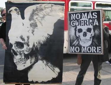 | Interview with Mark Vallen 2006. By Jang Lee Tell us about the Los Angeles art scene, are you part of it? As an LA artist I have little choice in being involved in the city's art scene, but it's as diverse and multi-layered as any other scene. In it you have amateurs, wannabe's, hacks, poseurs and professionals; people who are lacking talent and others who are truly gifted; those who pursue their craft for lofty reasons and those who seek nothing more than fame and fortune. The art world itself is divided into spheres where people are categorized by motivation, ability, education, connections and much more. There's a huge difference between an artist who sells art in the park and one who sells in galleries or is collected by museums - it's all very politicized. It's always been part of my nature to go against the grain, so I never really had much interest in developing a "career" as an artist, I just did what came naturally - which was to draw and paint. I've only just recently begun to pay attention to the elite art world of galleries and museums, but I mostly see them as walls to be breached. You used to do street wheat pasting and the city gave you a big fine. How did they catch you? I refuse to testify under the protection afforded me by the Fifth Amendment to the Constitution of the United States of America. We still have a constitution, don't we? I'm not sure what parts we are still allowed to use - I'll have to check with Homeland Security. But all seriousness aside, yes, I used to engage in street art by wheat-pasting posters on the walls of the city. In fact, I was the first to do so in Los Angeles starting in the late 1970s. My work was largely anonymous and sometimes bilingual, but I gave up street postering after I saw others in LA were building a damned career out of the practice. I took great offense at that, as I believed (and still do), that the best street art is always done incognito - it's not about ego and careerism - it's about imparting ideas. I've seen some of your work on t-shirts, books, and cd inserts. How do you feel when someone uses your art work without your permission. It's always disrespectful to have the fruits of your labor used by someone else without permission, payment or credit. I think that not receiving credit for having created an artwork is the worst insult to a visual artist, and I see this happening all the time. If a single image created by an artist is good, then why not credit the artist so that people can look them up to see their entire body of work? It's like repeatedly hearing a great piece of music on the radio but no one every tells you who it is! Is there any type of music you listen to while you draw? Or do you need silence? That depends on my mood, sometimes complete silence is what I require. Most often though I'm listening to music, and my girlfriend Jeannine tells me that people would be shocked to know what I listen to, which is just about everything - folk, blues, movie soundtracks, jazz, world music, opera, punk. you name it. I was around eight years old when I purchased my first record, Edvard Grieg's "Peer Gynt Suites," followed by Tchaikovsky's "1812 Overture." I still listen to European Classical music today - it's standard fare in my home. On the opposite end of the spectrum there's my passion for punk. Mostly I like the late 70's sound from the UK and Los Angeles. Pistols, X-Ray Specs, Siouxsie and the Banshees. that sort of stuff. But I also love the "peace punk" sound exemplified by UK bands like Crass and Discharge. Since I'm an LA boy I naturally favor the hometown bands that started it all in '77... Bags, Weirdos, Germs, Fear, Screamers, Black Flag, that crowd - all of which I saw in performance and will never forget. What art classes did you take in college and what influenced your work? I went to Otis Parsons Art Institute in the early 1970's where I wanted to study drawing, painting and print-making, however, I wasgreatly disappointed in art school. I was expecting training in traditional methods of art making, and instead the teachers kept dissuading me from that path, insisting that I pursue the abstract and conceptual. After a while I simply lost interest and quit art school, so for all intents and purposes I can say that I'm self-taught. Nevertheless, my self-education was extensive and rigorous, a mix of endless reading and applied theory and practice - a process I'll continue to the end. The bestadvice I have for aspiring artists is to study, ready everything pertaining to the arts, devour it all - history, theory, and technique. But fuse that knowledge with real life experience, because making good art depends on what you know about life. You used to do work with 70's punk bands. What is some of the stuff you did that we should know about? I'm most well known for the covers I created for Slash Magazine, one of the very first and most influential punk publications in the US. I was always drawing portraits of people involved in LA's punk movement, and most of those artworks have never been seen - someday I'll get around to exhibiting them. I also did lots of work quietly "behind the scenes" so to speak - like creating flyers for various bands or events. I also did some post - production work on The Decline of Western Civilization documentary by Penelope Spheeris. What about in the 80's? What work did you do in the punk community and the activist community? Those were the Cold War years, when President Reagan and allies like Maggie Thatcher of England where expanding their nuclear arsenals in preparation for an atomic exchange with the Soviets. Another big issue for me was the US-backed wars raging in Central America and the tens of thousands of war refugees flocking to safety here in Los Angeles. Stopping the nuclear madness and assisting the poor people of Central America was of paramount importance to me, and all of my artworks at the time were devoted to those ends. During that period I worked to bring 