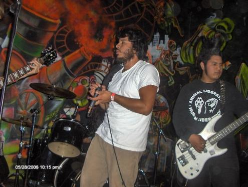 | RIVERSIDE SCENE REPORT BY NO REFORM: We currently reside in Moreno Valley, CA, which is a city in Riverside County. When No Reform first started, there was very near nothing of a punk scene. With a fellow punk band from the area called The Invalid 6, we began to build up a scene very slowly by playing shows together. As our area began to grow, it became apparent that our scene was a very cool one. We never had fights, and people were cool and polite. The scene today is not exactly the same. Fights and near-fights are becoming routine, punk gangs are emerging, people are bitching about having to pay at benefit shows, people talk shit on animal rights supporters, etc. The overall spirit of the shows and the community seems to be on a downward spiral sadly. With The Invalid 6 and other bands breaking up, there is a lack of bands in the area also. Our friends Vomit Clot, however are a new band who have been making shows and trying to build up whatever they can. More and more kids are more concerned with alcohol and their ego than the music or the community or the cause. As for the activist scene in Moreno Valley, it seems very close to non-existent. We do our little part by saying what we say in our lyrics and what we present as education (leaflets, fact sheets, speeches). There has been a few actions such as a few animal rights demos and an anti-Nike demo that have gone in the last 2 years or so, but things seem to have faded into nothing in the last year. A plan we hope to soon put into action is the creation of an organization (The Community for Peace and Human/Anmial Rights). And on one last note we'd like to mention a great organizaion based in the Riverside area call the Riverside Area Peace and Justice Action (RAPJA)(www.rapja.org). |
