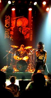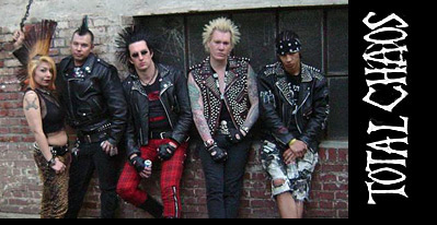 | How do you feel about having all of your original members (except for Joe Bastard) playing along side of you again? It is good, because we went through so many line-up changes after Gearbox left in 95'. It feels good to have him back, we are more united. You guys have been around along time- most bands don't last 5 years, how did you manage 16? Truthfully, a lot of bands take things to seriously. They get overly business like with the music. It causes conflict and the band self destructs. Total Chaos is more like a group of friends. We treat the band like a big party, but we still don't forget what we stand for. What is going on with this new album? It is a super political album. We were inspired by the sickness of the current administration. We feel frustrated and angry- our music represents that. You've toured with so many UK bands this past 2 years, how did you land all of these tours? Over the last 15 years we have made a lot of friends, with many different bands. Some of the UK bands hadn't toured the US in many years and asked me to help them out. For example "The Exploited", Wattie vowed never to tour the US again, because of rip off promoters and bad booking agents. After a continued correspondence of almost 8 years, Wattie finally agreed to a US tour, as long as I kept a close eye on all his US tour business and that we toured with them. That kind of got the ball rolling. The first tour was a success, Wattie was happy. Other bands heard about that and they wanted the same trust-worthy business relationship with someone in the states. So I worked with Conflict, Broken Bones and Blitz. Plus it was a dream come true being able to not only play with the bands I grew up listening to, but to bring them to the next generation. I see that many of these same bands are now signed to SOS Records. Did you have something to do with that and what is your affiliation with the label? In 2001 I had a previous label, which I released "Punk Invasion" on. In 2002 "Funeral Dress" agreed to put out a record on the label, but I didn't have the funds. But I did have an old friendship with a powerful promoter, named "Ezzat Soliman". He liked the idea and that was the beginning of SOS Records, it has been a perfect collaboration. With his help, I could sign and support bands that I believe in. Since you guys tour so much, what were some of the problems you have encountered on rode? That is a hard question, because we have had many. I guess I will start from the beginning- lets call it "The Years of Chaos". In 91' we did a mini tour with "Resist and Exist" in California. We had 4 shows; the first was in a warehouse in Orange County. The cops shut the show down before we could even play. Joe Bastard (bass player) started asking kids if they knew a place we could play at. They said they had a friend that lived down the street and we might be able to play there. He wasn't home, but there was a closed gas station next door and they had an outlet in the back. So we plugged in and played for about a 100 kids, from the show. The cops came after 3 songs and planned on arresting us. But the owner of the station showed up and dropped all charges. A couple of days later we played 2 gigs in Berkeley. One at Gilman St. with Resist and Exist and the other at Punks for Presses, which was Rancids first show and they opened up for us. After the gig was over we were hanging out with Tim and some of the guys from Filth. Joe B. was throwing beer bottles across the street, cops came and arrested him, ending that tour. Many other things happened throughout years, riots here and riots there. Joe B. getting arrested in Hart Park in OC in 92' for in sighting a riot and in 93- the riot in Mexico City. In Mexico City the venue was too small and all the kids couldn't get in, so they tore that part of the city up. In 94' on our first tour for Epitaph, Joe was arrested twice- first, assault and battery on a police officer and second, assault with a deadly weapon (a beer bottle) on a liquor store owner. Then 2 days later Gearbox (drummer) got arrested for possession of Mary Jane, all mind you in a 5 week tour. Next tour with the "Mighty Mighty Bosstones" in 94', we burned a US flag on the stage in Prove, Utah. Some of the club staff were so mad, they called the cops- which in turn escorted us out of their state and threaten us never to come back. In 95' with the release of "Patriotic Shock", which has a lot of anti racist lyrics, was deemed a threat to the Aryan nation. We had hate mail coming into Epitaph and the tour was crazy. There were Nazis at our shows protesting all through the south and some parts of the east coast. Joe B. got jumped at one show and 2 ribs got broken, but they didn't hurt him. Shortly after that tour, we went to Europe. During the tour in Germany we heard about the Chaos Days. Which is a big punk rock gathering in the city of Hanover (usually thousands of kids) there were no bands scheduled to play, because of previous riots. But there was a folk festival happening called the Harvest Festival at a large park. It was an out door free event, that happened to have a stage. The punk kids from the Chaos days saw us there. We were on tour, but we had the day off, so our driver took us to check out this festival. Shawn (guitar player) is German, so the kids asked us to play the festival and we said how can we do that? Just because there is a stage, doesn't mean we can play. So a bunch of them made their way back stage and demanded the promoter to let us play. He said "no they aren't on the schedule and there is no time". So they threatened to riot and he finally agreed. The promoter gave us 20 minutes and right before our last song, Shawn says in German "this song is called Riot City- so let's riot"! All hell broke loose, by the middle of the song- the police had shown up and the crowd exploded into the biggest punk rock riot, I had ever seen. It lasted 3 days and it was all over the news, that "Total Chaos" a punk