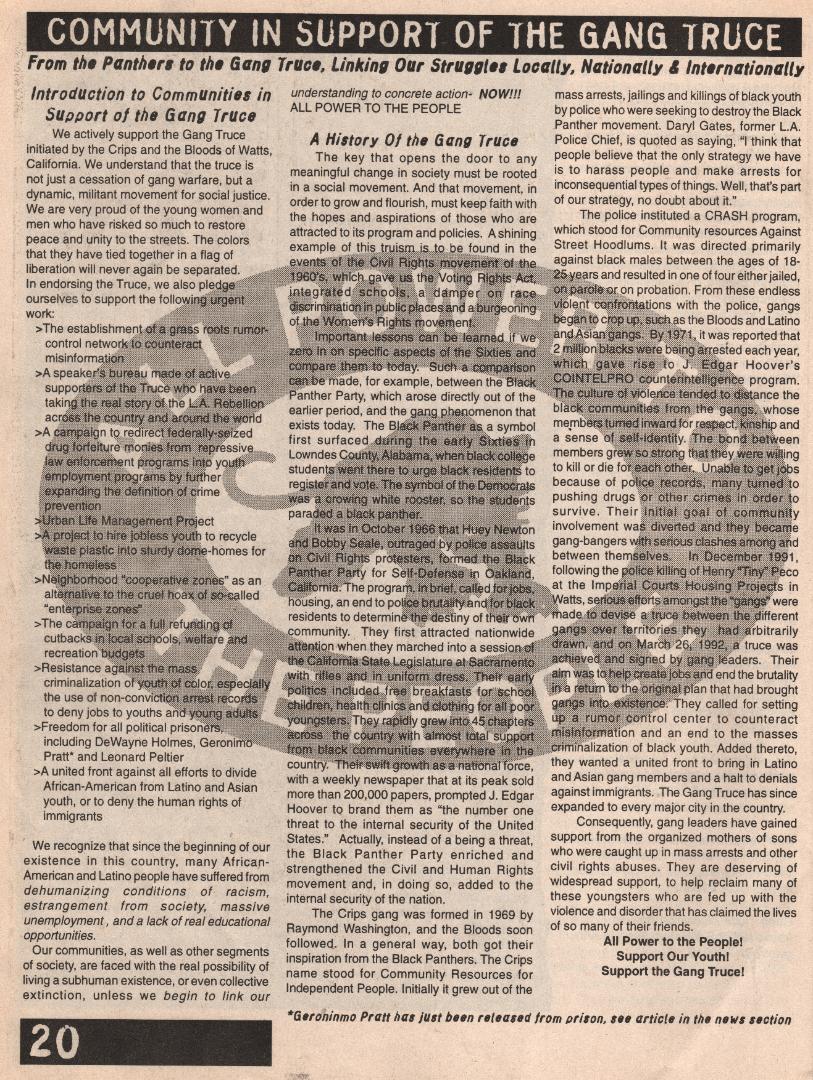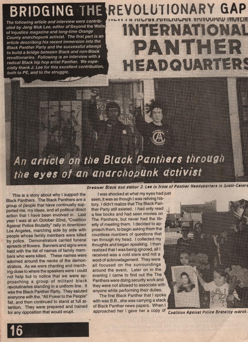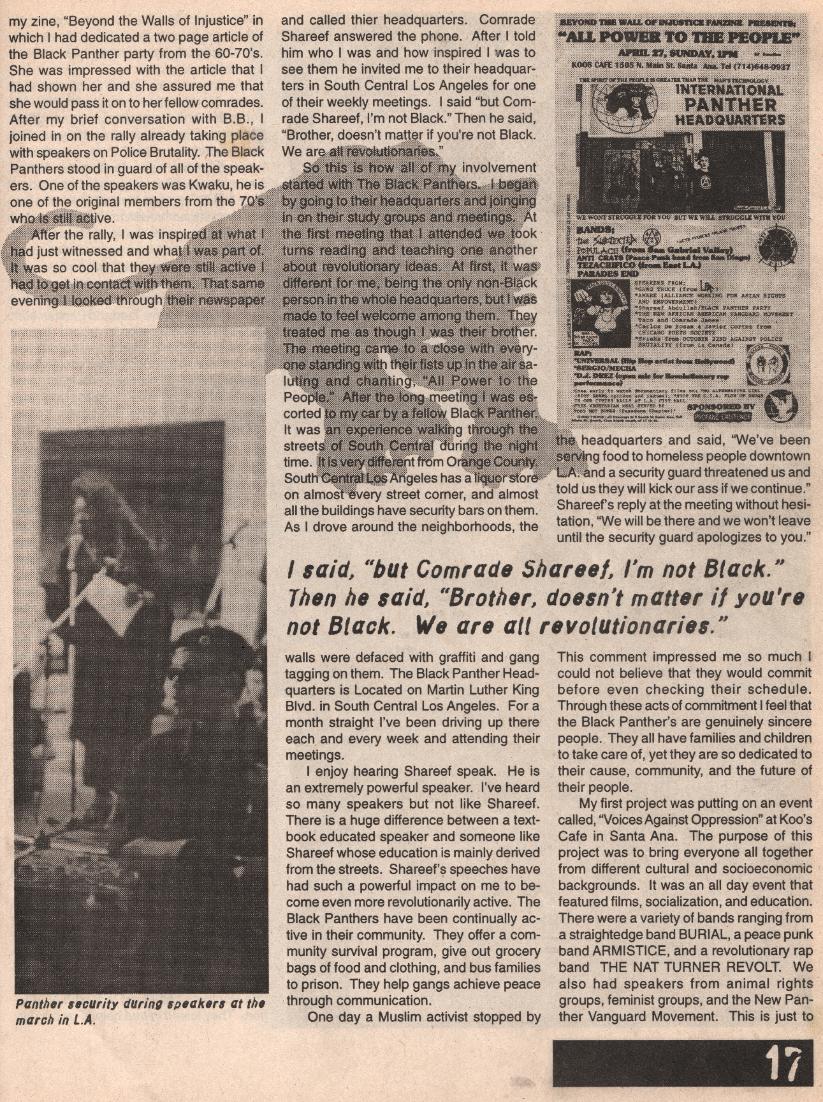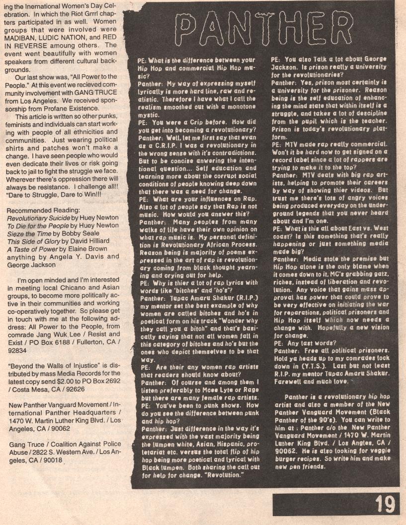 | South - Central Los Angeles was very different in 1996, and so was the Orange County Peace Punk scene. It was very radical at that time. This article below was written 20 years ago, and it was printed in Profane Existence magazine. An Anarcho Punk zine that was based in Minneapolis, MN. |