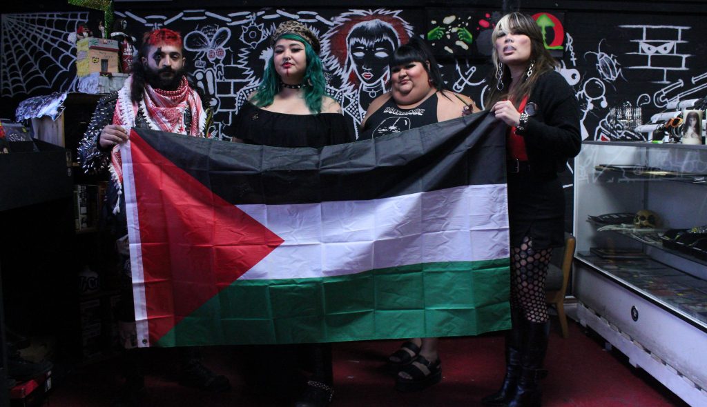 The first “Punks for Palestine” was manifested in Los Angeles, CA on Sunday, November 5th, 2023. Punks for Palestine as an idea started off as a conversation between two friends, Abdullah El-Khatib from the band Inqirad, and Jezel Huapaya a.k.a. “Cheetah.” After seeing countless images of devastation in Palestine, especially videos of mothers and children suffering and being murdered, a fire was ignited within them. They talked in depth about all that they learned and saw happening to innocent Palestinians. They felt the need and desire to help, and realized they had a whole community of people around them. A punk community was nearby that has a spirit of questioning and dismantling the status quo, going against the grain, and being an anti-war movement.