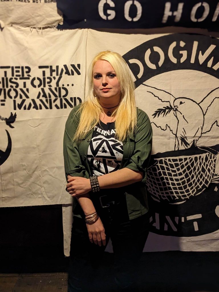 In the fall of 2017, band members Jeff (former bassist) and Justin (guitarist) were hanging out together talking about their future in music. This led to them exploring their interest in starting an 80’s anarcho punk inspired band, even if it was just to perform once at an event. This idea was brought forward to Steph (vocalist) and then to James (drummer). The band became a reality, calling themselves “Dogma.” Dogma ended up becoming a solid and consistent band, and has had long-term success as they have continued to perform over the last 5 years. Changes happened in the band overtime, including Jeff leaving the band, and Ricky now playing as their bassist.