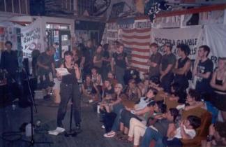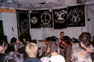 This was a full U.S.2001 tour. I want you to imagine doing a 31 day tour with only 2 days break. We played every night. You can?t remember all the bands that you played with. This is something that I will never do again and in my opinion it was the worst tour we ever did. However Scott thinks that it was the best Resist and Exist tour. We all came back with lack of sleep and weighed less. I lost about 15 pounds from this tour. Many thanks to Neil from Tribal War records for driving the van. Most of the shows were small, at co-op houses, community centers, small venues, etc. I cannot remember all the opening bands that we played with each night. I really did not like the scene in the east coast because Scott booked us with hardcore bands. However it was really inspiring to see small collectives, centers, co-op houses, all struggling to get by. The band members got along very well on the whole tour except when Austin was on stage talking about arm struggle and putting down the peace movement. I got in a big argument with him after that show. Thanks to all the collectives and people who fed us and gave us a place to stay, the collectives (sorry can?t remember all the names), Picasso (Mankind), Chris (Anti Product), Adriann (Spitboy), Repeat Offender, Gunspiking, Christine (Slug & Lettuce), Dan (Profane), Fabio from Chicago, Eileen, and many people that I forgot the names for. Since this was a long tour and I wanted to come back home, I did not write a journal. Till this day, I don?t understand why Neil had us do a full US tour. The only good thing was we brought tons of literatures and every show Austin and Jeff talked about political prisoners. The tour was more like activists hanging out together instead of just a band. We did network a lot and I?m really glad we at least broke even from this tour.