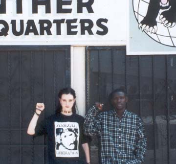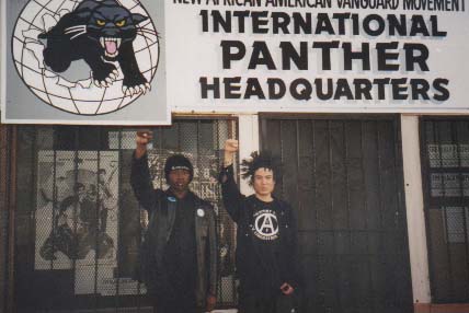 | About the Resist And Exist second EP cover: The picture was taken in South Central L.A. in front of the International Panther Headquarters in South Central Los Angeles. The fist salute means ALL POWER TO THE PEOPLE. It was used a lot in the late 60's by the Black Panther Party. Los Angeles had some racial prejudice problems in the working class poor community that surfaced in the Los Angeles Riot/Rebellion in 1992. We thought it was a good idea to put a Black Revolutionary and a Korean Punk Rocker together on the cover to break down the stereotypes that are going on between Koreans and African Americans here in Los Angeles. This photo was taken in solidarity. Both people on the cover are local activists and have done benefit shows together and built a friendship. From 1997-98 according to Shareef Abdulah, J.Lee was the first non-black to join the New Panther Vanguard Movement. We broke history when we were the first to have Punk bands play inside the headquarters with other political rap bands. In addition J. Lee wrote a couple of reviews and short articles in the new Black Panther newspaper. We also held numerous meetings, rallies and group studies together with the New Panther Vanguard Movement. J.Lee stopped being active in the organization when his close friend Taco from the Black Riders Liberation Party left. However Kwaku Duren and Neelam from the NPVM let us continue to use the space for fundraising, and to hold the Solidarity Festivals, International Women's Day and other events. We greatly respect and thank the New Panther Vanguard Movement. About the insert on our 2nd EP cover: Many people were shocked and disagreed with the insert article that was written by Joel (ex- Profane Existence writer). The title of his article "Abolish the White Punks" shocked a lot of people. Many people took that statement and article to be racist. We choose that article because it challenges the white anti-racist activist. The article talks about white skin privilege and giving self-criticism within the punk movement. This article is not anti-white people (Joel himself is white), it is about tearing down the system of white supremacy and the privilege that goes along with that. How does Resist and Exist fight racism? To me fighting racism is not about going out and starting fights with people who are prejudice or who hate other races. It's not about just saying I'm against racism and wearing t-shirts, patches with slogans and protest buttons. Fighting racism goes much deeper than that. It's about studying and learning about different cultures and going into other communities and learning, questioning, exchanging ideas etc. If you don't study other cultures how can you plan to go into other communities to work together and learn? One thing I didn't like about a lot of peoples attitude was; yeah end racism but I won't go into the community where people of color are. Sometimes also it's a good idea to find out why people become racist, many people have different reasons. There have been times when I have talked with a racist in a one on one conversation to find out what their reason was. Some people have so much hatred and seem beyond help, but I believe some people can still change. We do not fight racism with racism. We fight racism through solidarity, education, unity, and peace. |