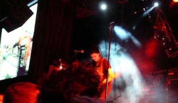 | Resist and Exist (we were showing protest footage on the two giant screens next to the stage). Pic by Wood |