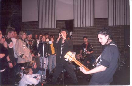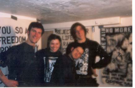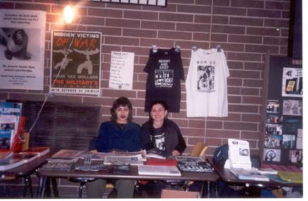 We finally got to Idaho. We were at this house with mostly young kids. They were members of ARA (Anti Racist Action). There was all kinds of porn, movies and magazines, lying around. We went out to get food and came back and there was porn in the bathroom too. I was using the kids computer to check my email and there was a cartoon woman on the screen with her legs spread. Neil told the kid that he should fight this too, not just racism. The kid said it wasn't his home. He said that other kids from ARA left because of sexism. When I got into the van I got the feeling that some of the member of Resist and Exist and Aus Rotten didn't want to stay at that house. Jen, Freddy, and Gidget all went to get a hotel room. Aus Rotten, Neil, Richard, Mark and Carolyn from AK Press weren't interested in that. Neil said that when you're on tour you don't stay in motels because it just costs too much. So now we're at this college campus and there are a lot of young punk kids. The opening band was joking around and using words like cunt and bitch. Katrina came to me and said that a lot of these young kids were talking down to girls in the hall way. She wanted me to say something on mic. So before we went on I decided to do it in a friendly way since these were young kids. I asked them how they would feel if someone called their sister, mother or grandma a bitch. I was really surprised that no one told me to shut the fuck up and just play. I started out with a poem and gave a peace salute and some kids gave the peace salute back to me. I think Marck did a great job addressing the crowd about respecting women. Dave from Aus Rotten did even more of an explanation about the whole sexism thing. After that we packed everything up and helped Richard load all the equipments and the PA system into the other van. Some kid came up to me with our EP and asked me for an autograph. I didn't want to reject him and say "Oh, I'm not a rock star". So I took the ep and wrote "unity, trust and much respect. The guys from Aus Rotten gave me a weird look because they reject autograph requests and explain to the kids that they are not rock stars. Dayna and Gabe invited us to their house. Gabe does a radio show so he interviewed all of us. Somehow I couldn't do the interview because I was really tired after our performance. |