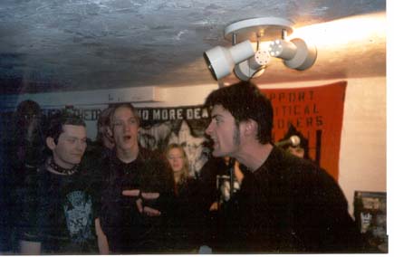 I asked how many vegetarians were in the audience and there was not one person who raised their hand. Marck did a great job as usual. Aus Rotten didn't do well because their singer was sick. After the gig we all went to the living room and watched a Leonard Peltier documentary. Freddy warned me about this town after someone drove by and screamed "white power" at us |